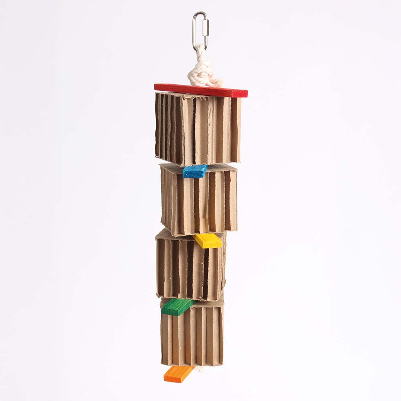 Kartotinis žaislas skatina papūgos natūralius graužimo ir žaidimo instinktus. Spalvotos medinės kaladėlės ir kartono elementai suteiks ilgalaikį pramogų ir padės išlaikyti snapo bei nagų sveikatą.